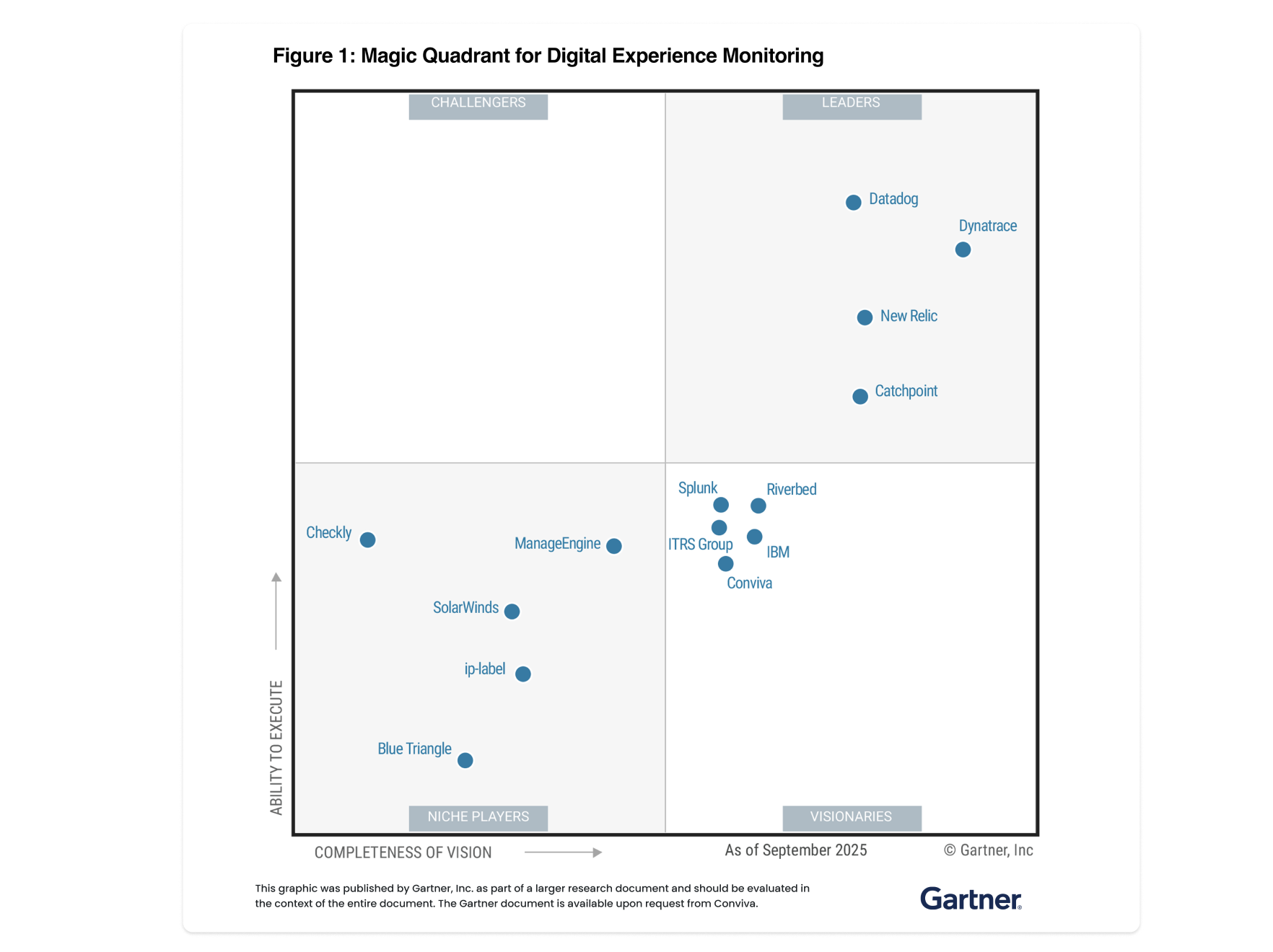 Gartner, Magic Quadrant for Digital Experience Monitoring, published 27 October 2025 by Padraig Byrne, Pankaj Prasad, Martin Caren, D.B. Cummings, Matt Crossley, Tanmay Bisht