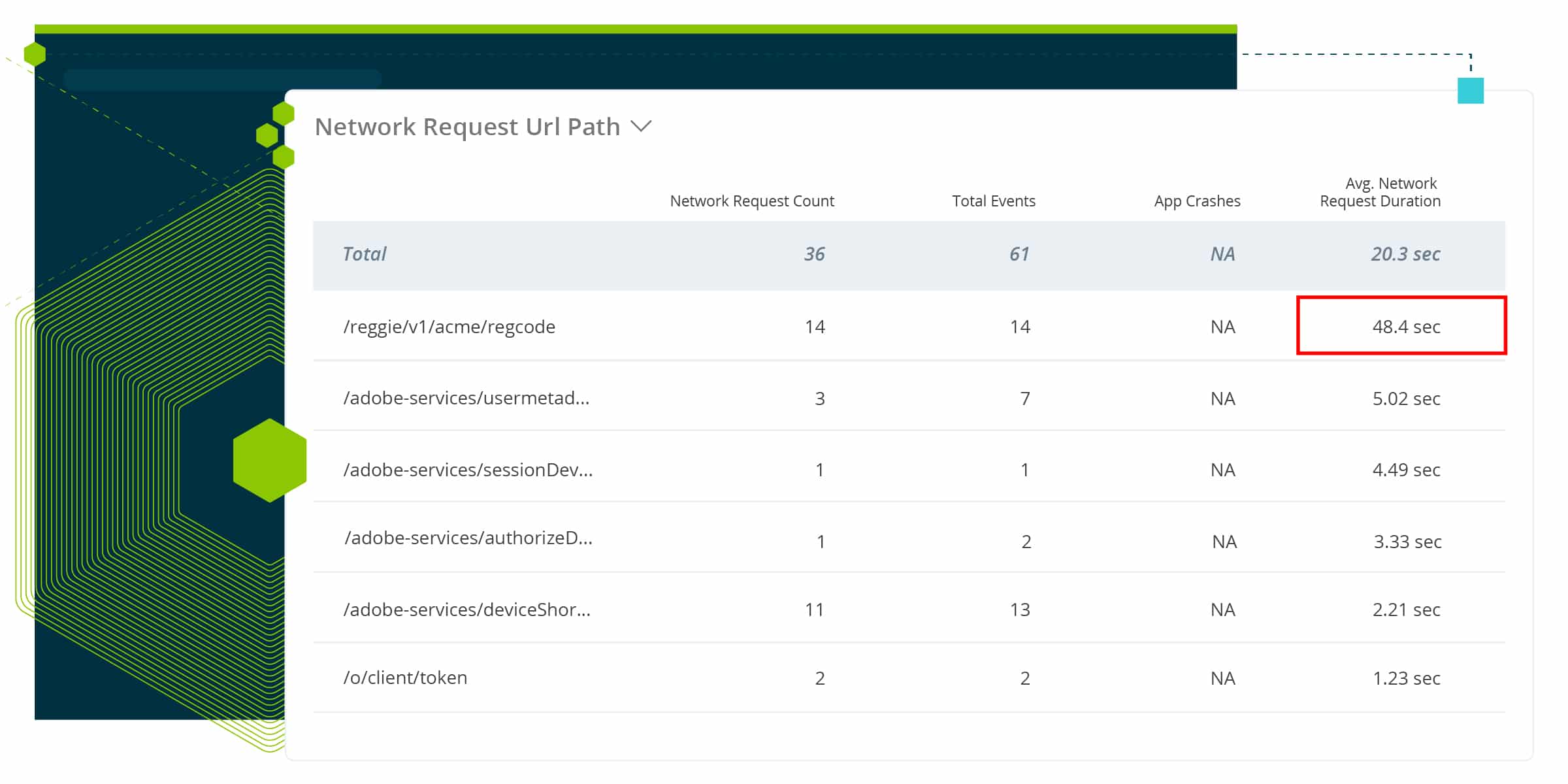 From there, a team member noticed that a 3rd party authentication service was reporting abnormally high network request times. They knew they were on the right track to finding the root cause of their issue. They then drilled down into that authentication service and found the specific broken URL request causing the increase in login processing time.