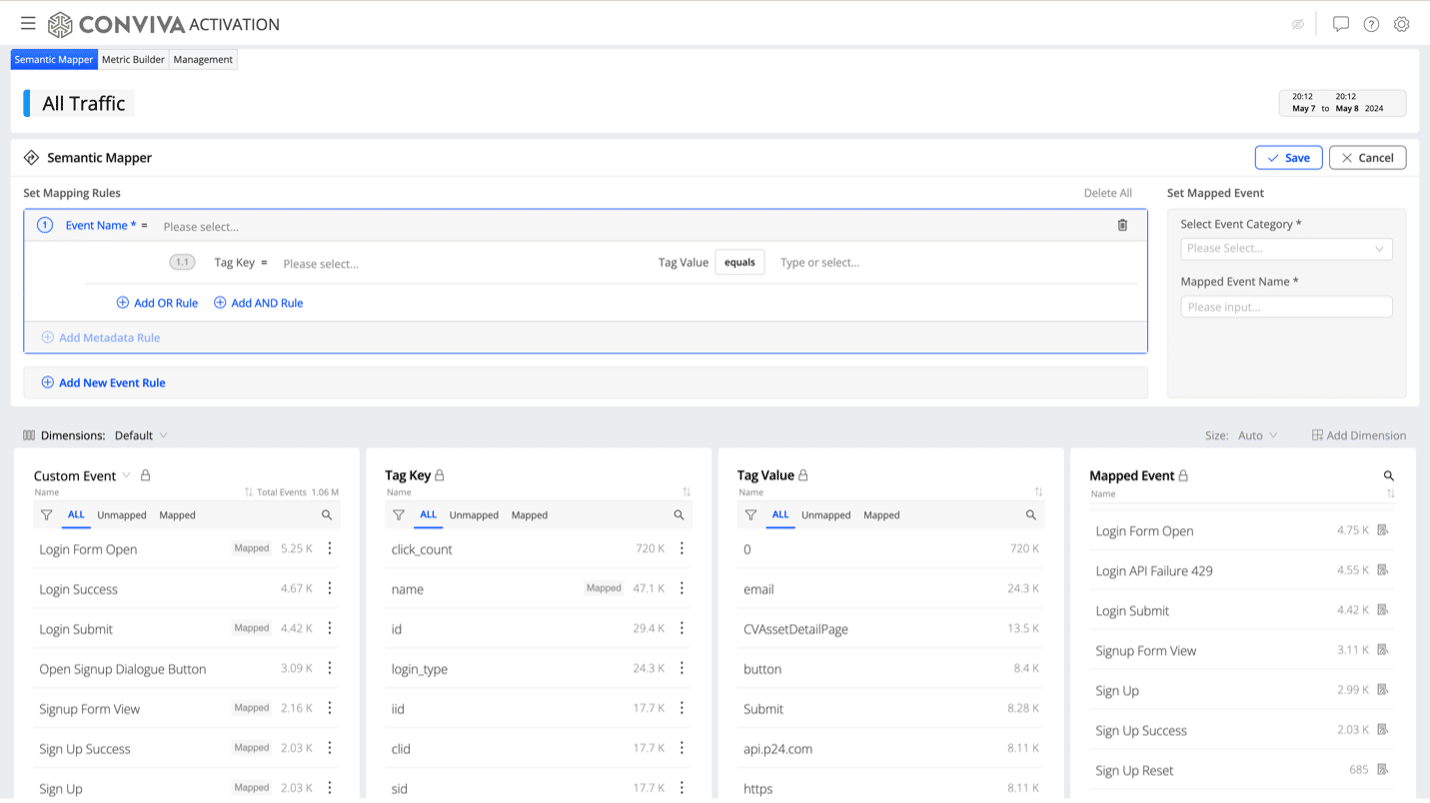 Our Semantic Mapper allows you to pull in the events that matter most for your business. This tool allows you to translate raw events into business events—that is, common-sense events that have an impact on your business operations. You can block events that aren’t of interest, allowing you to control costs and keep visibility only to the events that matter most.