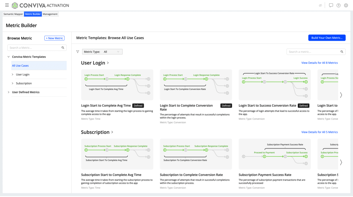 With Conviva’s Operational Data Platform, building these Stateful Metrics can be completed with just a few clicks. No need for complex instrumentations and endless lines of code, our No Code platform makes it so any team member (no matter how technical) can select the most relevant user events and quickly turn them into Stateful Metrics.