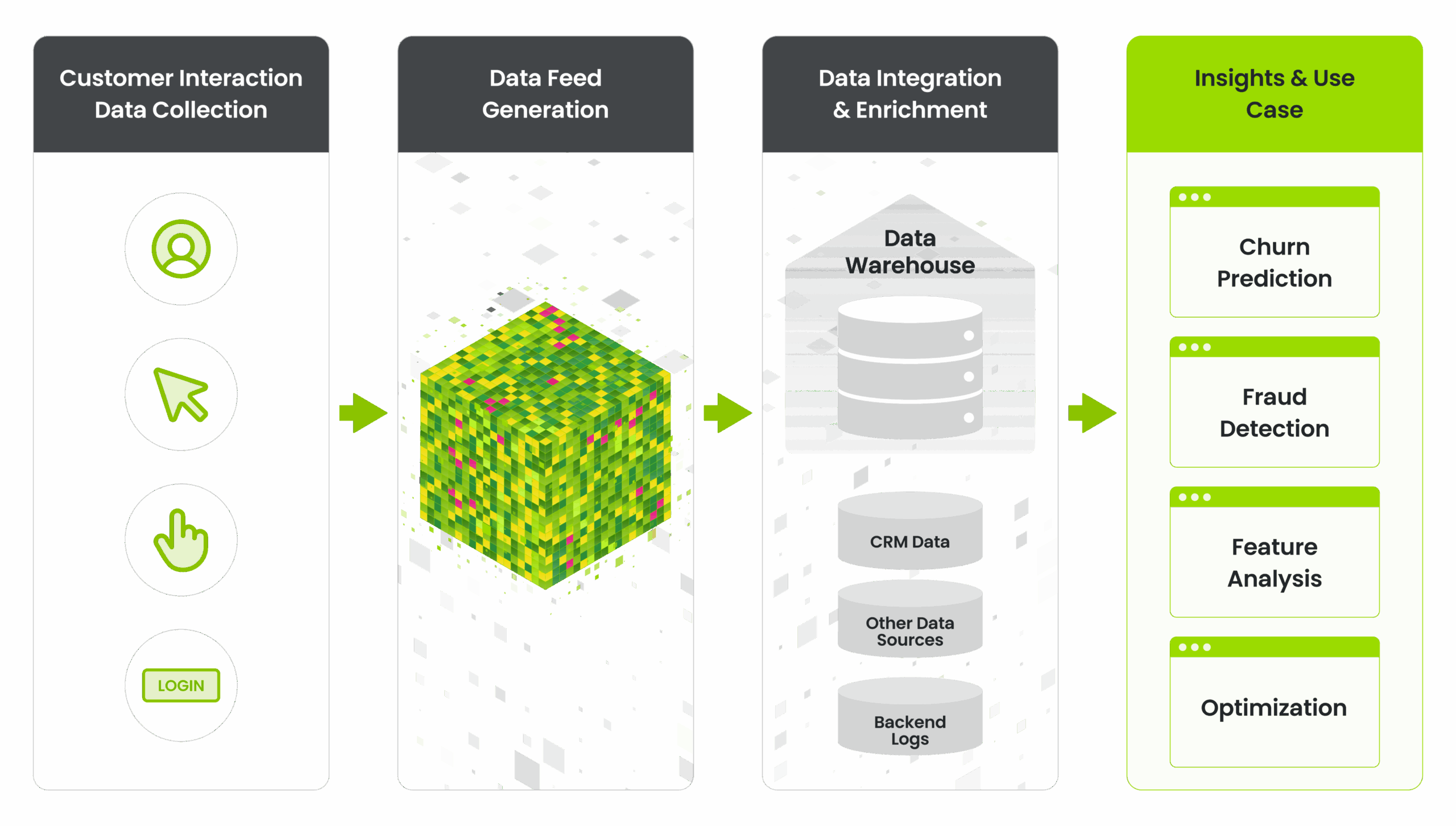 Conviva’s Data Feeds provide a rich, compact source of data that is easy to work with and cost-effective. Conviva aggregates every aspect of each user’s interaction into a single line, allowing you to focus on high-value analysis. Additionally, Data Feeds power a range of business-critical use cases, complementing the real-time issue detection and resolution benefits covered in the Conviva Pulse UI . Data Feeds provide an invaluable route for audience and behavior analysis, including churn and engagement analysis, fraud detection, and personalization. Unlike other sources, the data is real-time and at scale. Most importantly, Conviva Data Feeds give you an unfair advantage — the power to know what your customer thinks.