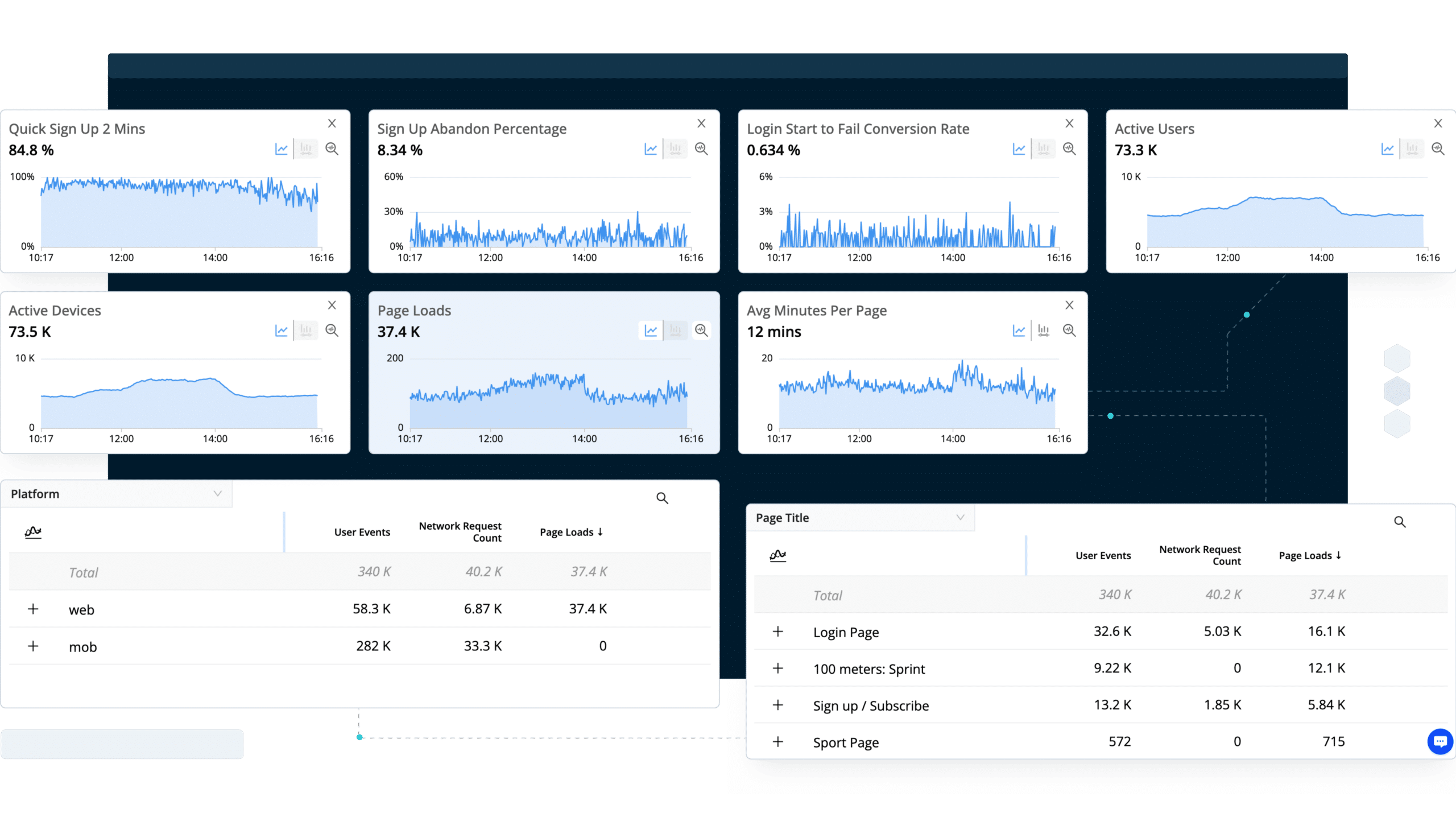- Business-critical user journeys, or the user’s ability to successfully complete critical business journeys within your platform;